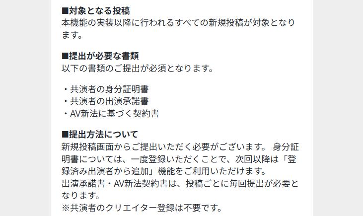 myfansの投稿にはAV新法契約書や出演者承諾書等の提出をしないと投稿ができなくなった。